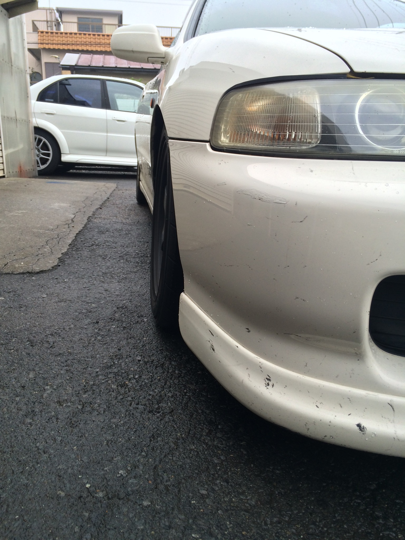 ブログ 2014.11.9 DC2 フロントキャンバー加工 くくぐーっと、ナックル曲げてフロントキャンバーを4度にしました♪ 4度あると、単純にカッコイイ♪ もちろんコーナーでは、 ぐいぐいですよ!(笑)