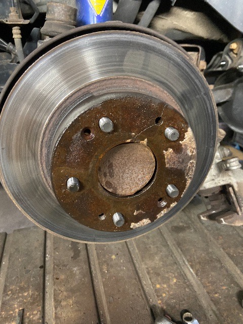 ローター裏の内側の錆が進み、ハブ径よりローター内径が小さくなっており、