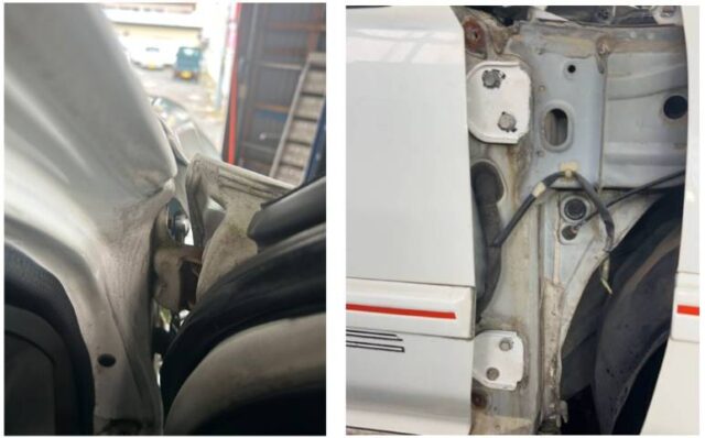 しかしヒンジ固定ボルトがフェンダーに干渉してしまい、